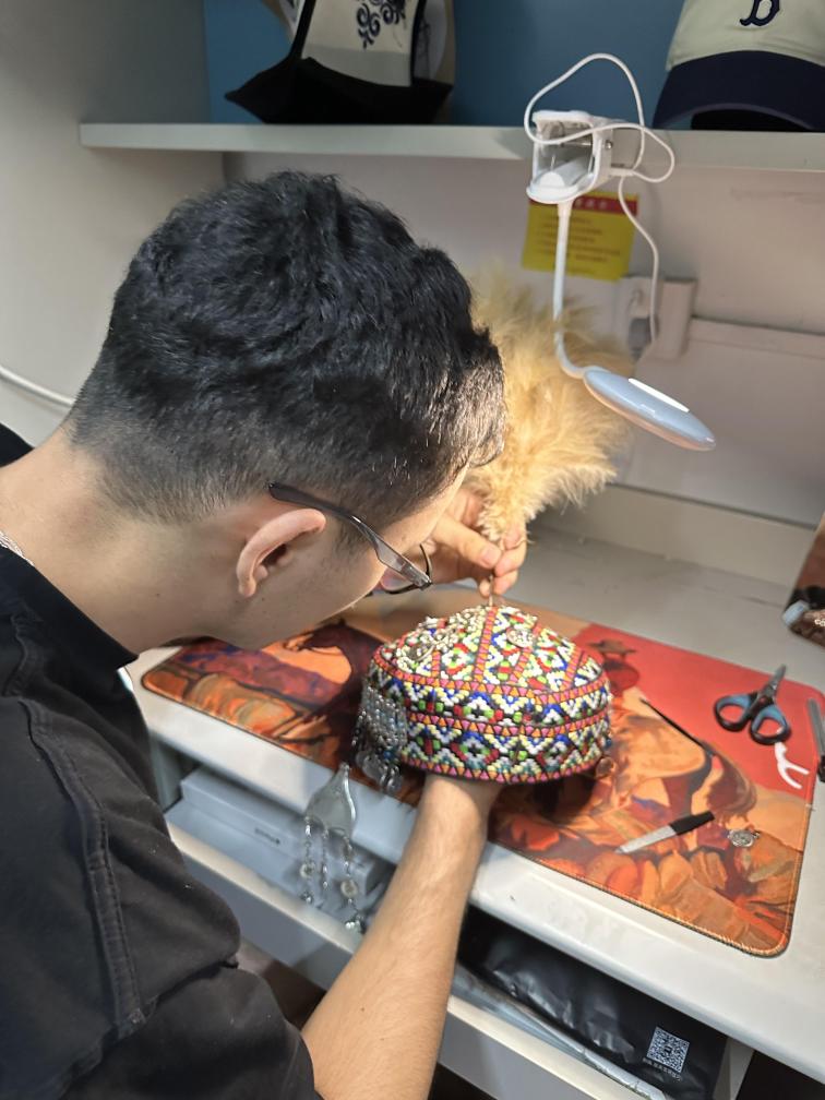 進入大學學習工業(yè)設計專業(yè)后,唐寶開始對第二批國家級非遺“哈薩克族服飾”為代表的民族傳統(tǒng)文化藝術(shù)有了更多思考。在老師們的支持下,他在學校成立了“哈薩克非遺工坊”,以建立數(shù)據(jù)庫的方式專注搜集設計、活化利用非遺傳承。