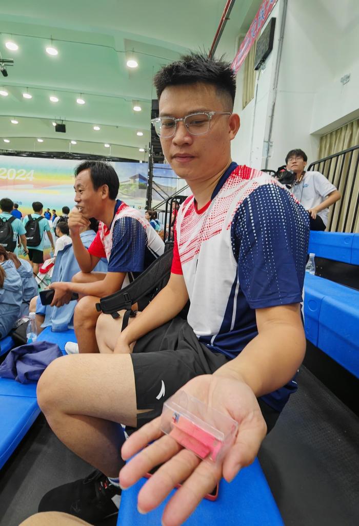 “香港隊很厲害,沒想到他們還給我們準(zhǔn)備了禮物,挺驚喜的。”西藏隊毽球運動員韋盛森從褲兜里掏出一個精致的粉色毽球掛飾給記者看,并懊惱自己沒有準(zhǔn)備禮物?!百惡笪覀兒拖愀坳犝f了很多互相鼓勵的話,我們希望找機會再和他們交流。”