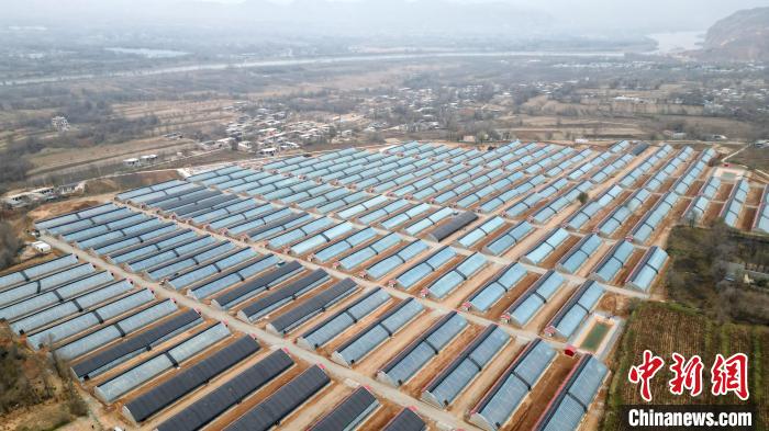 11月21日,航拍甘肅省積石山縣大河家鎮(zhèn)韓陜家村集中安置點后續(xù)產(chǎn)業(yè)——高效節(jié)能日光溫室蔬菜大棚。九美旦增 攝