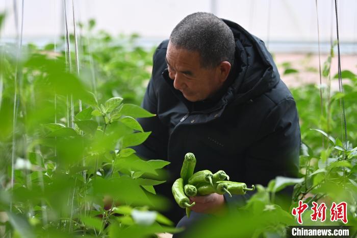 11月21日,甘肅省積石山縣大河家鎮(zhèn)韓陜家村村民正在溫室大棚里采摘辣椒。九美旦增 攝