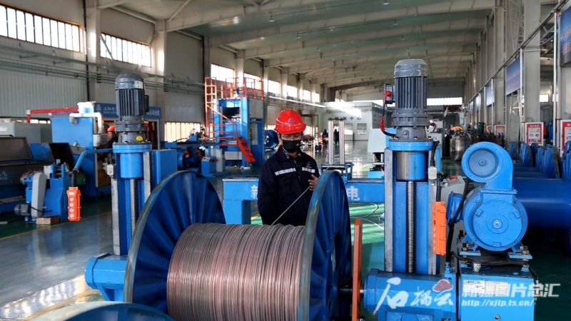 新疆新東風(fēng)電纜有限公司生產(chǎn)車(chē)間內(nèi),工人正在忙碌加工產(chǎn)品。布仁巴特?cái)z