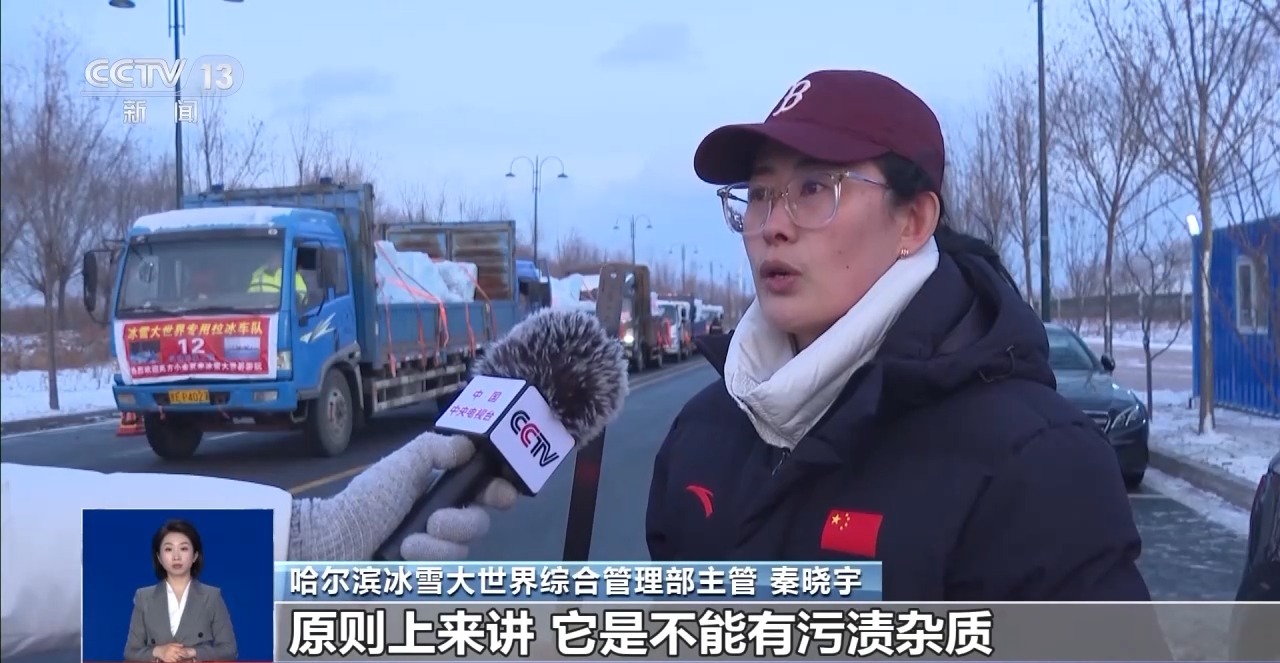 哈爾濱冰雪大世界綜合管理部主管 秦曉宇:我們首先要看冰的透光度,原則上講,不能有污漬雜質(zhì)或者明顯的污殼,才能夠給廣大游客呈現(xiàn)一個(gè)美輪美奐的冰雪大世界。