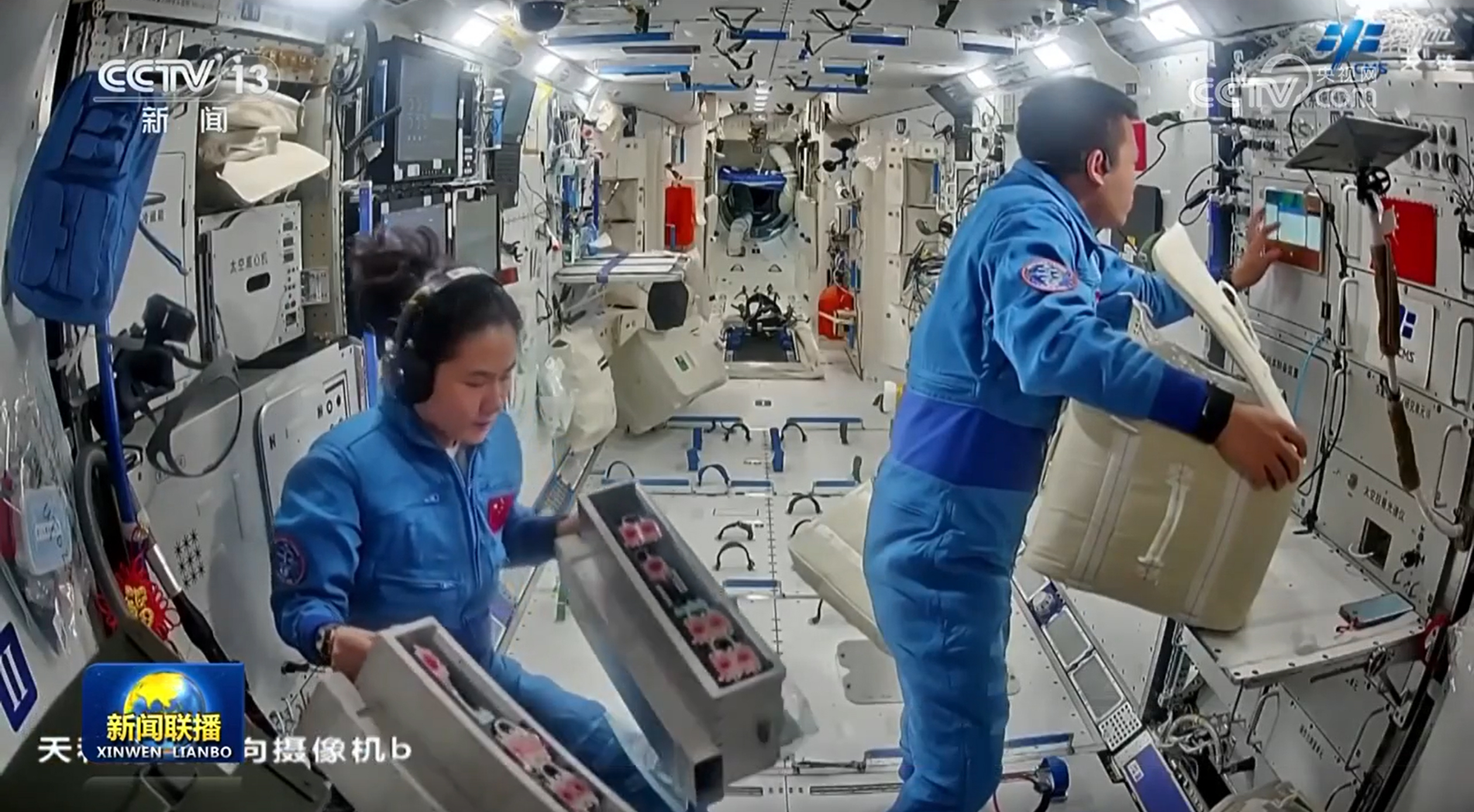 在軌一個(gè)月,三名航天員主要開展了空間科學(xué)實(shí)驗(yàn)和試驗(yàn)、空間站平臺(tái)照料、自身的健康維護(hù)與保障等工作。11月15日,天舟八號(hào)首次將果蠅送入太空,目前,航天員完成了生命生態(tài)實(shí)驗(yàn)柜內(nèi)果蠅轉(zhuǎn)移、收集、氣體凈化組件更換等操作。果蠅基因與人類具有高度相似性,可為人類太空長(zhǎng)期生存提供寶貴的理論依據(jù)與技術(shù)指導(dǎo)。飛行任務(wù)期間,乘組將重點(diǎn)開展86項(xiàng)空間科學(xué)研究與技術(shù)試驗(yàn)。目前,空間生命科學(xué)、航天醫(yī)學(xué)等多領(lǐng)域?qū)嶒?yàn)項(xiàng)目正在同步開展,相關(guān)數(shù)據(jù)已下行給地面科研人員。