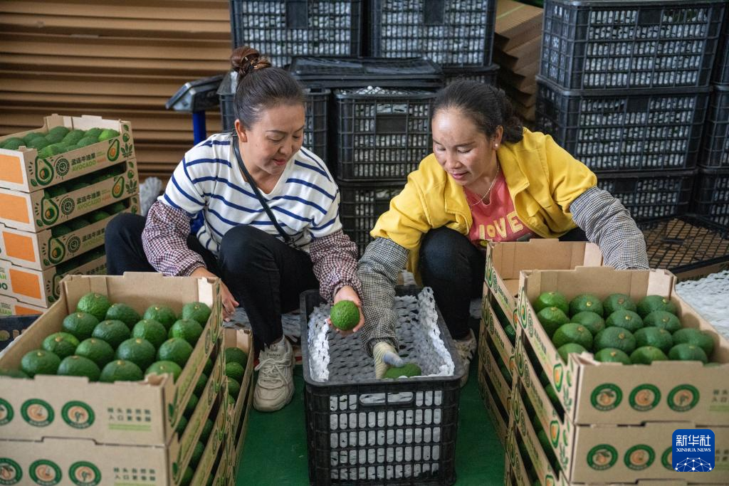 工人在中國孟連牛油果集配中心內包裝分選后的牛油果(10月29日攝)。新華社記者 陳欣波 攝