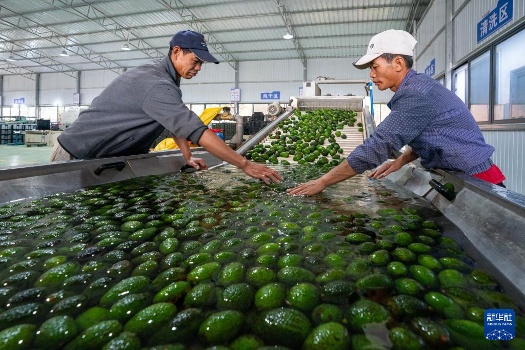 清洗、殺菌、拍照、稱重……在中國孟連牛油果集配中心,牛油果從分選傳輸帶對應品級的出口滾落,經(jīng)人工檢查分裝后無縫對接冷鏈貨運。