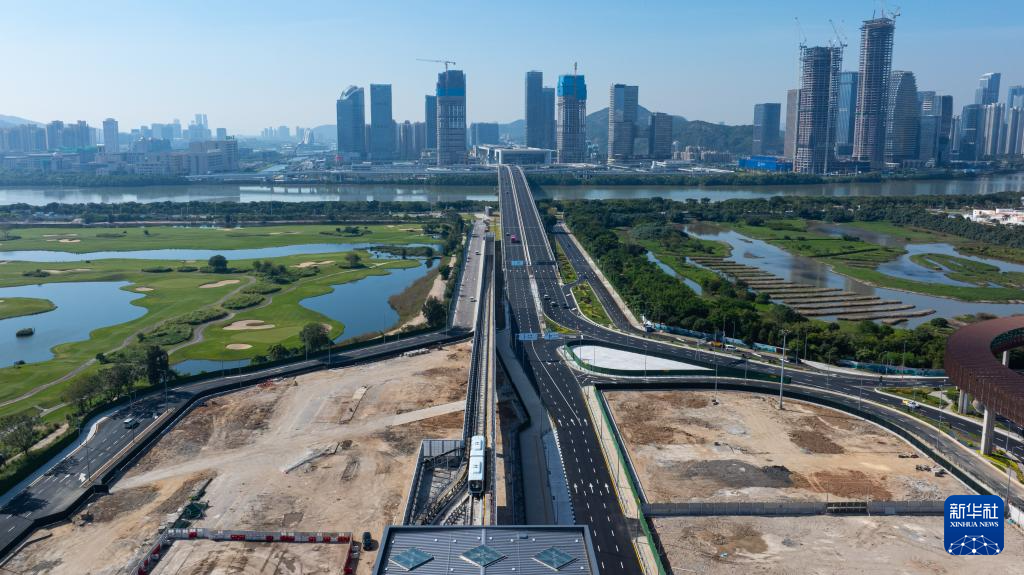 12月2日,澳門(mén)輕軌從蓮花站開(kāi)往橫琴站(無(wú)人機(jī)照片)。新華社發(fā)(張金加攝)