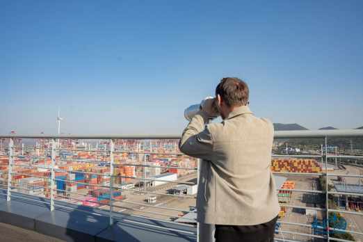 記者們站在觀景平臺(tái),通過(guò)望遠(yuǎn)鏡親眼見(jiàn)證了全球最繁忙集裝箱港口之一的現(xiàn)代化作業(yè),他們爭(zhēng)相與壯觀的碼頭場(chǎng)景合影留念。來(lái)自哈薩克斯坦《誠(chéng)實(shí)報(bào)》社會(huì)文化部主任納烏雷茲別克·薩爾沙耶夫在接受環(huán)球網(wǎng)記者采訪時(shí)說(shuō)道“寧波舟山港的運(yùn)作效率和智能化管理令人贊嘆,它無(wú)疑是全球物流行業(yè)的標(biāo)桿?!?/p>