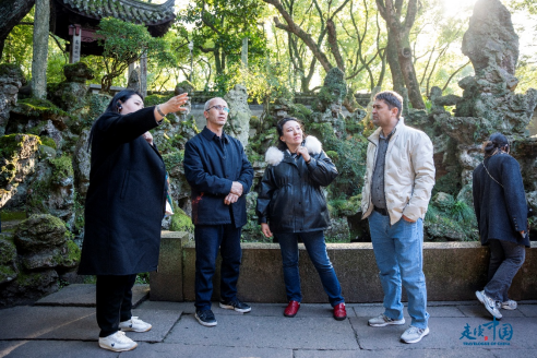 天一閣作為中國(guó)現(xiàn)存最古老的私人藏書(shū)樓之一,深深吸引了外國(guó)記者的注意。天一閣內(nèi)保存了豐富的古籍與文化遺產(chǎn),展現(xiàn)了寧波作為“文化名城”的深厚底蘊(yùn)。講解員向記者們?cè)敿?xì)地介紹了天一閣的歷史背景和文化價(jià)值,講述了“書(shū)藏古今、港通天下”的文化內(nèi)涵,使記者們對(duì)寧波的文化歷史有了更深的理解。