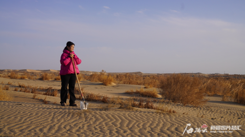 2005年,23歲的帕提古麗來到且末縣防風(fēng)治沙工作站,成為且末縣首批防沙治沙護(hù)林員。20年來,她不畏艱辛,挖坑栽樹,割蘆葦建草方格,把最美好的年華都奉獻(xiàn)給了這片黃沙之地。曾經(jīng)青春洋溢的少女,如今已步入中年,她用自己的青春換來沙漠中那一片片生機(jī)勃勃的綠色。