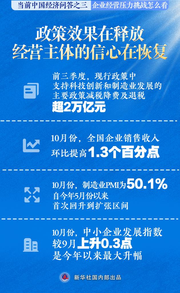 與此同時,針對經(jīng)濟(jì)運行特別是企業(yè)發(fā)展中遇到的問題,一系列政策、改革舉措更精準(zhǔn)、更聚焦:著力提振需求,“兩重”政策有力支撐了一批重大工程建設(shè),“兩新”政策帶動相關(guān)產(chǎn)品銷量持續(xù)增長;進(jìn)一步穩(wěn)住外貿(mào)基本盤,《關(guān)于促進(jìn)外貿(mào)穩(wěn)定增長的若干政策措施》印發(fā),真金白銀支持外貿(mào)企業(yè);著眼提升民營經(jīng)濟(jì)信心,民營經(jīng)濟(jì)促進(jìn)法草案公開征求意見,全國統(tǒng)一大市場建設(shè)加快……