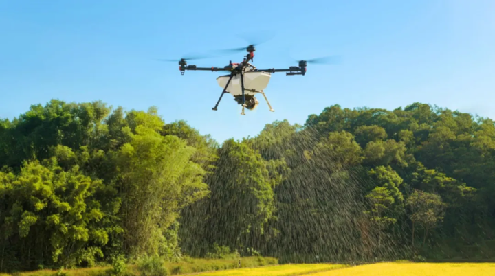 極飛農(nóng)業(yè)無人飛機(jī)正在播撒作業(yè)。(受訪者供圖)