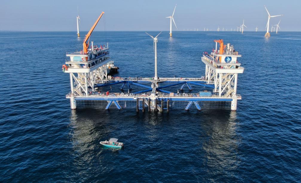 據(jù)了解,“伏羲一號(hào)”實(shí)現(xiàn)了“一邊海風(fēng)發(fā)電、一邊深海養(yǎng)魚”,建造過程中創(chuàng)新應(yīng)用了抗臺(tái)風(fēng)、防撞擊、強(qiáng)防腐等多種新技術(shù),可正面抗擊17級(jí)超強(qiáng)臺(tái)風(fēng),預(yù)計(jì)年產(chǎn)優(yōu)質(zhì)海水魚類約900噸。