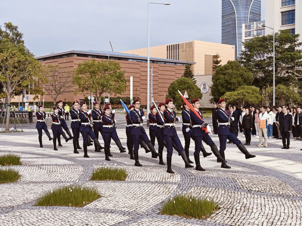 如今,澳門所有學(xué)校已實(shí)現(xiàn)升掛國旗全覆蓋。澳門大學(xué)于2018年正式成立學(xué)生國旗儀仗隊(duì)。這支由本科生、碩士生、博士生自發(fā)組成的隊(duì)伍6年多來持續(xù)成長壯大,已成為澳門高校界的一張靚麗名片。