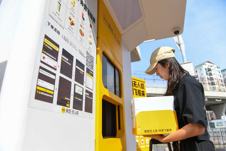 在深圳福田口岸,香港居民使用無人機外賣服務(wù)(2024年10月23日攝)。新華社記者 毛思倩 攝
