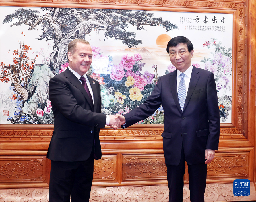 中共中央政治局常委、全國(guó)政協(xié)主席王滬寧12日在京會(huì)見俄羅斯統(tǒng)一俄羅斯黨主席梅德韋杰夫。