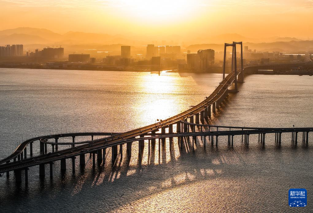 這是晨曦中的港珠澳大橋(2023年12月15日攝,無人機(jī)照片)。