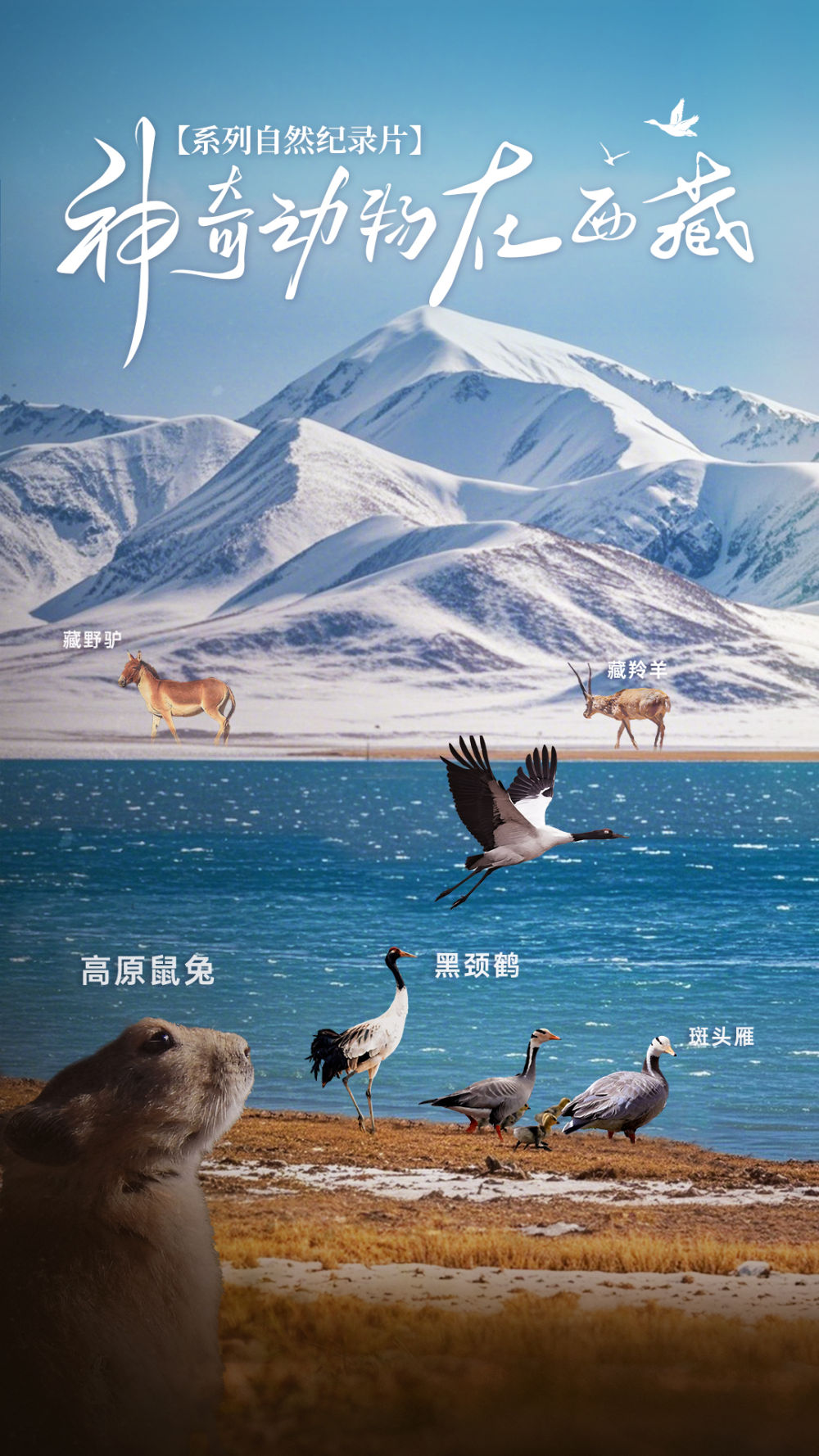 五集自然紀(jì)錄片《神奇動(dòng)物在西藏》,聚焦高原鼠兔、藏野驢、黑頸鶴、藏羚羊和斑頭雁,展現(xiàn)它們令人驚嘆的生存密碼,詮釋人與自然和諧共生的美好景象。