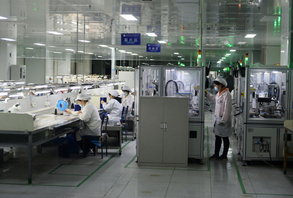 11月10日,在池州市經(jīng)濟技術開發(fā)區(qū),安徽安芯電子科技股份有限公司的工作人員在芯片AI檢測車間工作。該公司是國家級專精特新“小巨人”企業(yè),從事半導體芯片領域的研發(fā)生產(chǎn)。新華社記者 劉勇貞 攝