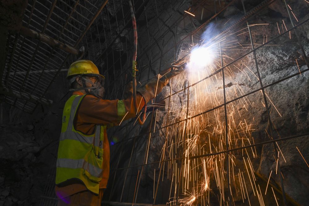 12月25日,工人在新疆天山勝利隧道內(nèi)進(jìn)行焊接作業(yè)。新華社記者胡虎虎 攝