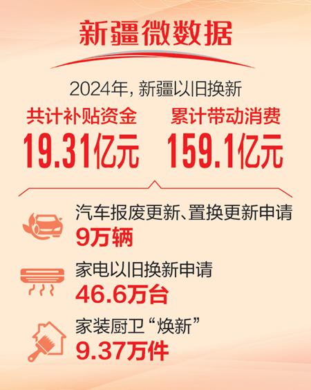 記者從自治區(qū)商務(wù)廳獲悉:2024年,新疆以舊換新活動(dòng)在汽車、家電、家裝廚衛(wèi)及電動(dòng)自行車等多個(gè)領(lǐng)域取得顯著成效,共計(jì)補(bǔ)貼資金19.31億元,累計(jì)帶動(dòng)消費(fèi)159.1億元。