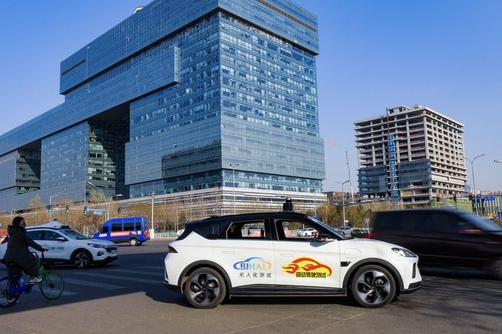 車內無人自動駕駛測試車輛在北京亦莊公開道路測試。(受訪者供圖)