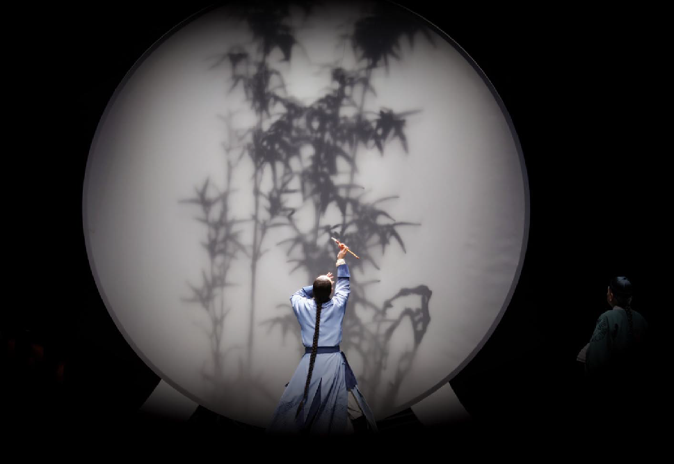 舞臺上,古琴與琵琶的悠揚旋律仿若一陣清風,輕輕拂開歷史的畫卷,清代揚州的風情萬種如詩如畫般徐徐展開。鄭板橋筆下的竹、蘭、石化作他性格的三種特質(zhì),生動地展現(xiàn)了為官之德、書生之質(zhì)、為民之心,以及他對生命價值的執(zhí)著堅守,深深地震撼著每一位觀者的心靈,讓他們沉浸其中,心潮澎湃。