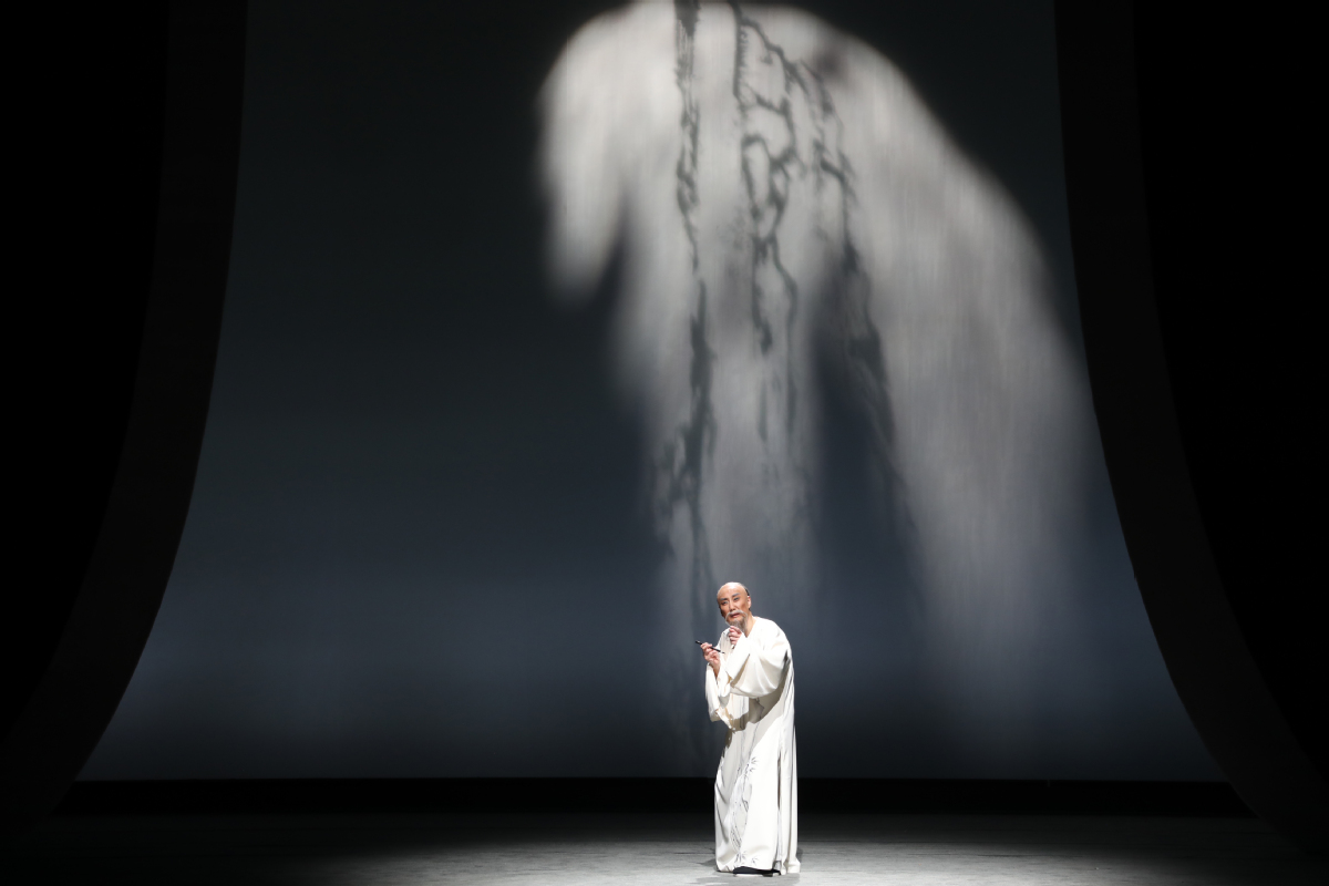 劇場里,舞臺的空間設計為觀眾提供深刻的審美體驗。舞臺既保留了傳統(tǒng)戲曲“一桌二椅”的簡約美學,又緊扣揚州園林特征,運用黑白對比色調(diào)和光影變幻,隱喻鄭板橋內(nèi)心澄澈與光明,使其性格直觀生動地傳達給觀眾,讓物理空間成為精神外延。