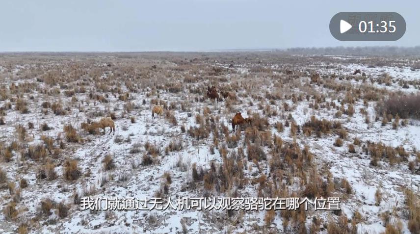 在新疆巴音郭楞蒙古自治州博湖縣,牧民道爾加拉每天都要把駱駝趕到戈壁灘上放牧,不過(guò)和以往不同的是,他現(xiàn)在放牧使用無(wú)人機(jī)。