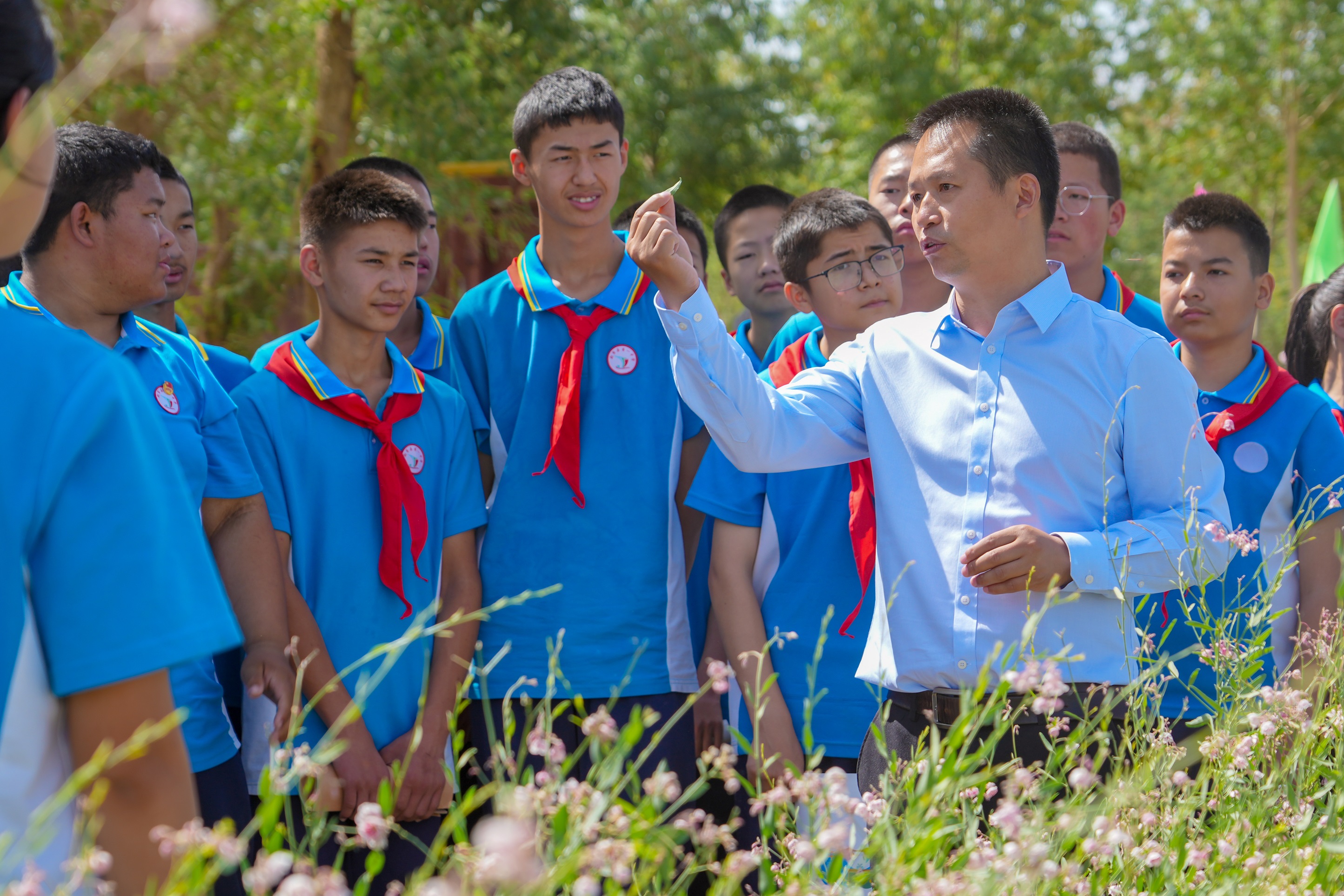 學生們在尉犁縣羅布麻種植基地參觀。奧瓊 攝