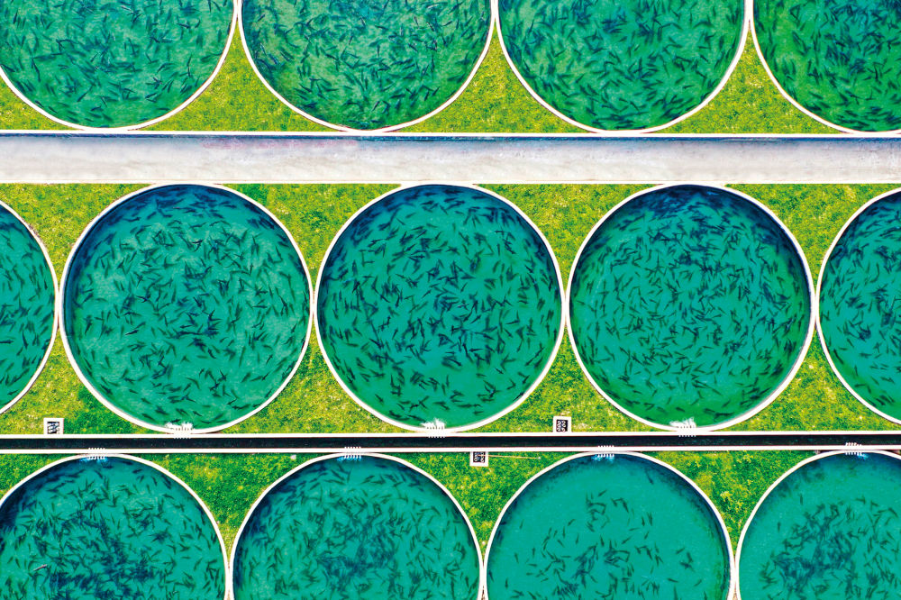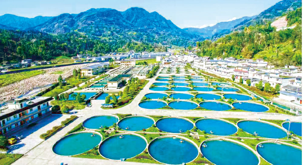 在四川省天全水產(chǎn)現(xiàn)代農(nóng)業(yè)園內(nèi),上百個(gè)圓形流水魚(yú)池依河而建。圖片由天全縣委宣傳部提供。