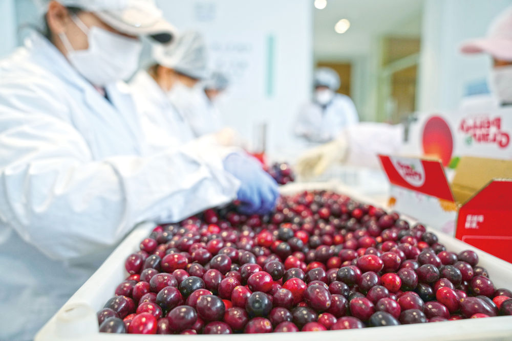 就這樣從無(wú)到有,從少到多,從掛果到豐產(chǎn),“日出之城”撫遠(yuǎn),悄悄成為“東方蔓越莓之都”。“國(guó)內(nèi)蔓越莓消費(fèi)近年增長(zhǎng)強(qiáng)勁,市場(chǎng)潛力大?!睎|北農(nóng)業(yè)大學(xué)現(xiàn)代農(nóng)業(yè)發(fā)展研究中心主任郭翔宇說(shuō),蔓越莓種植回報(bào)非常高,一畝蔓越莓相當(dāng)于50畝水稻或100畝大豆的收益。