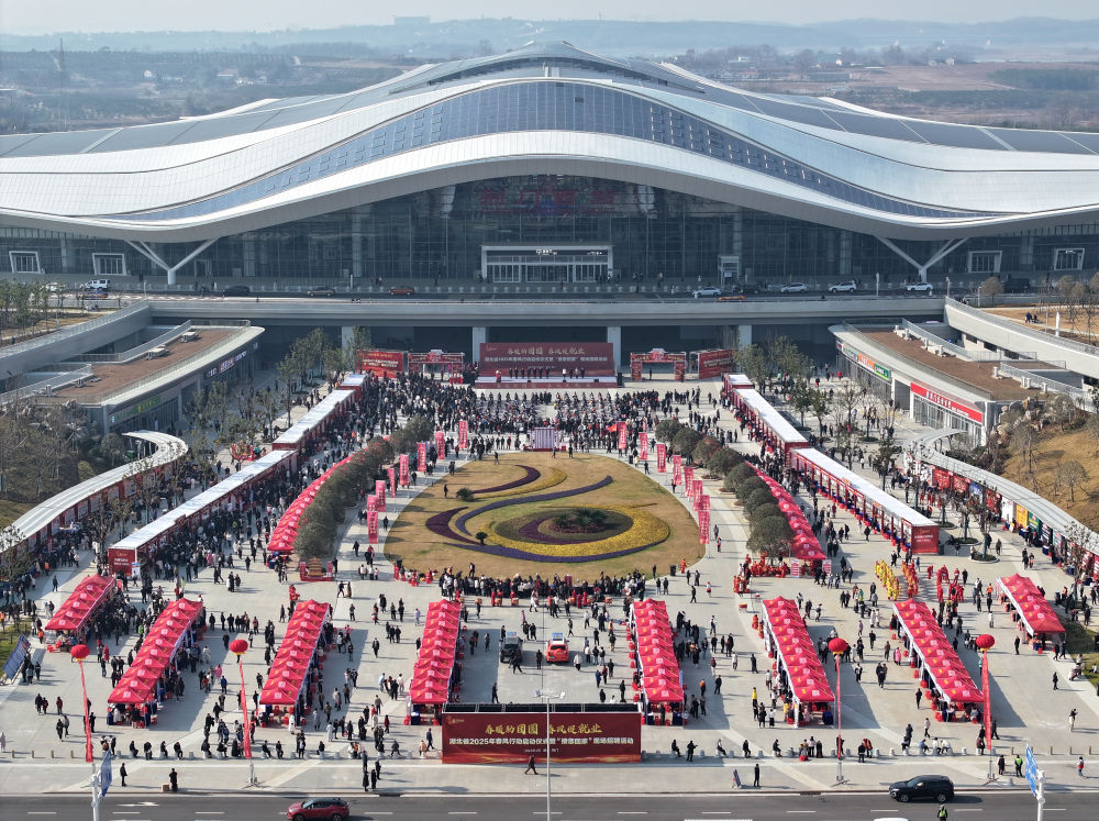1月12日下午,湖北荊門西站東廣場前,湖北省2025年春風(fēng)行動啟動儀式暨“接您回家”現(xiàn)場招聘活動舉行。(受訪者供圖)