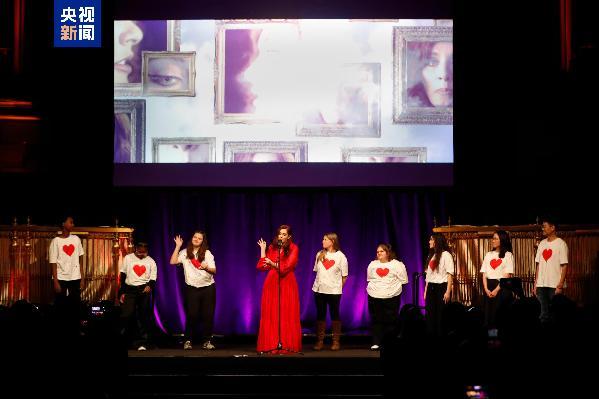 活動上,紐約市兒童合唱團深情演繹歌曲《呼喚之歌》《明天的彩虹》。美國失聰歌手曼迪·哈維攜手多位聽障學生,共同演唱歌曲《人生杰作》,并用手語向現(xiàn)場嘉賓表達祝福。