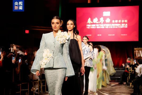 活動現(xiàn)場,“蛇年FUN舞挑戰(zhàn)”互動環(huán)節(jié)吸引了現(xiàn)場嘉賓熱情參與。來自美國華盛頓州的中學生代表和華僑華人少年兒童合唱團用中文演唱了經(jīng)典曲目《友誼地久天長》。多位新銳國際設計師從生肖蛇以及風靡全球的中國游戲《黑神話:悟空》、舞蹈《只此青綠》中汲取靈感,現(xiàn)場呈現(xiàn)了一場別開生面的新春“國風”時尚走秀。