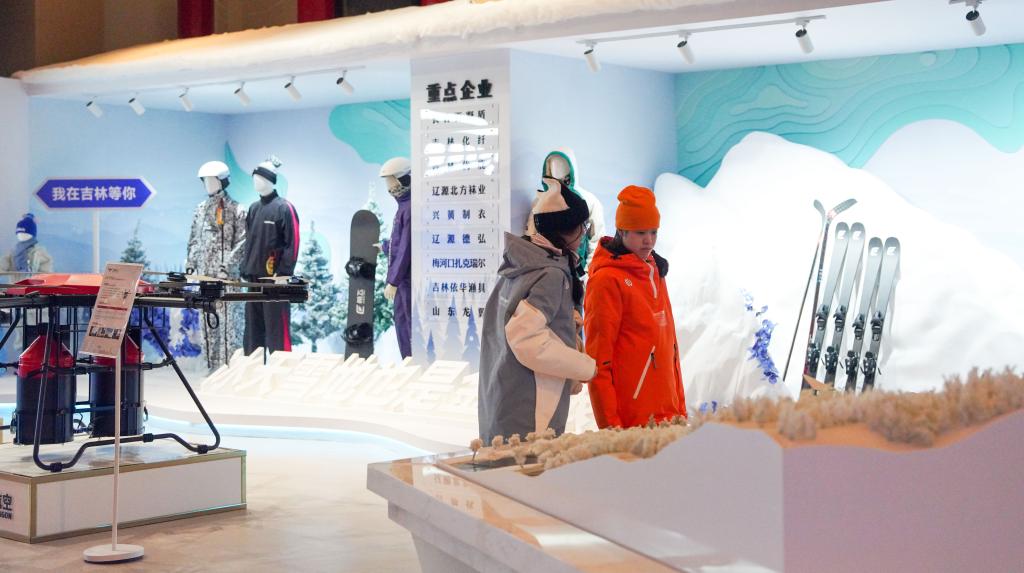 2024年12月19日,游客在吉林市北大湖滑雪度假區(qū)內(nèi)的冰雪裝備展區(qū)參觀。新華社記者顏麟蘊 攝