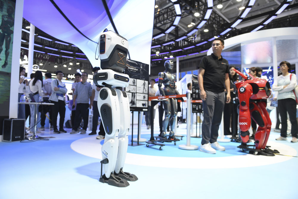 在深圳舉行的第二十六屆中國國際高新技術(shù)成果交易會(huì)上,深圳市眾擎機(jī)器人科技有限公司展示雙足機(jī)器人SA01的行走能力(2024年11月14日攝)。 新華社記者 毛思倩 攝