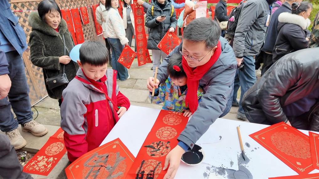 在當(dāng)日的非遺巡游環(huán)節(jié),鯉魚燈、舞龍舞獅、雜耍、川劇變臉吐火、塘河鎮(zhèn)婚俗嗩吶、狀元巡街、財(cái)神送福等精彩節(jié)目接連上演,吸引眾多游客駐足拍照;在非遺文化體驗(yàn)互動(dòng)區(qū),書法家們揮毫潑墨,將書法藝術(shù)、民俗文化融為一體,創(chuàng)作出一幅幅作品,游客們排起長隊(duì),依次領(lǐng)取“新年祝福”。