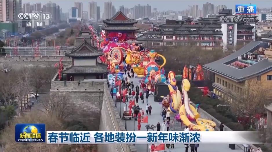 在北京長安街,大紅燈籠、中國結(jié)等各種燈飾陸續(xù)點亮,十里長街“披紅掛彩”迎新春。廣州越秀山華燈璀璨,具有嶺南特色的大型燈組、水上花燈打造出流光溢彩的喜慶氛圍。在陜西西安,今年燈會將38件文物珍寶以燈組的形式進(jìn)行復(fù)刻,讓文物“活”起來、“亮”起來,通過這種方式讓市民游客感受中國傳統(tǒng)節(jié)日的魅力。在福建廈門,數(shù)萬盞宮燈、藤球燈、燈籠串布滿大街小巷,將城市裝扮一新,微風(fēng)拂過,花燈搖曳,喜氣滿滿。