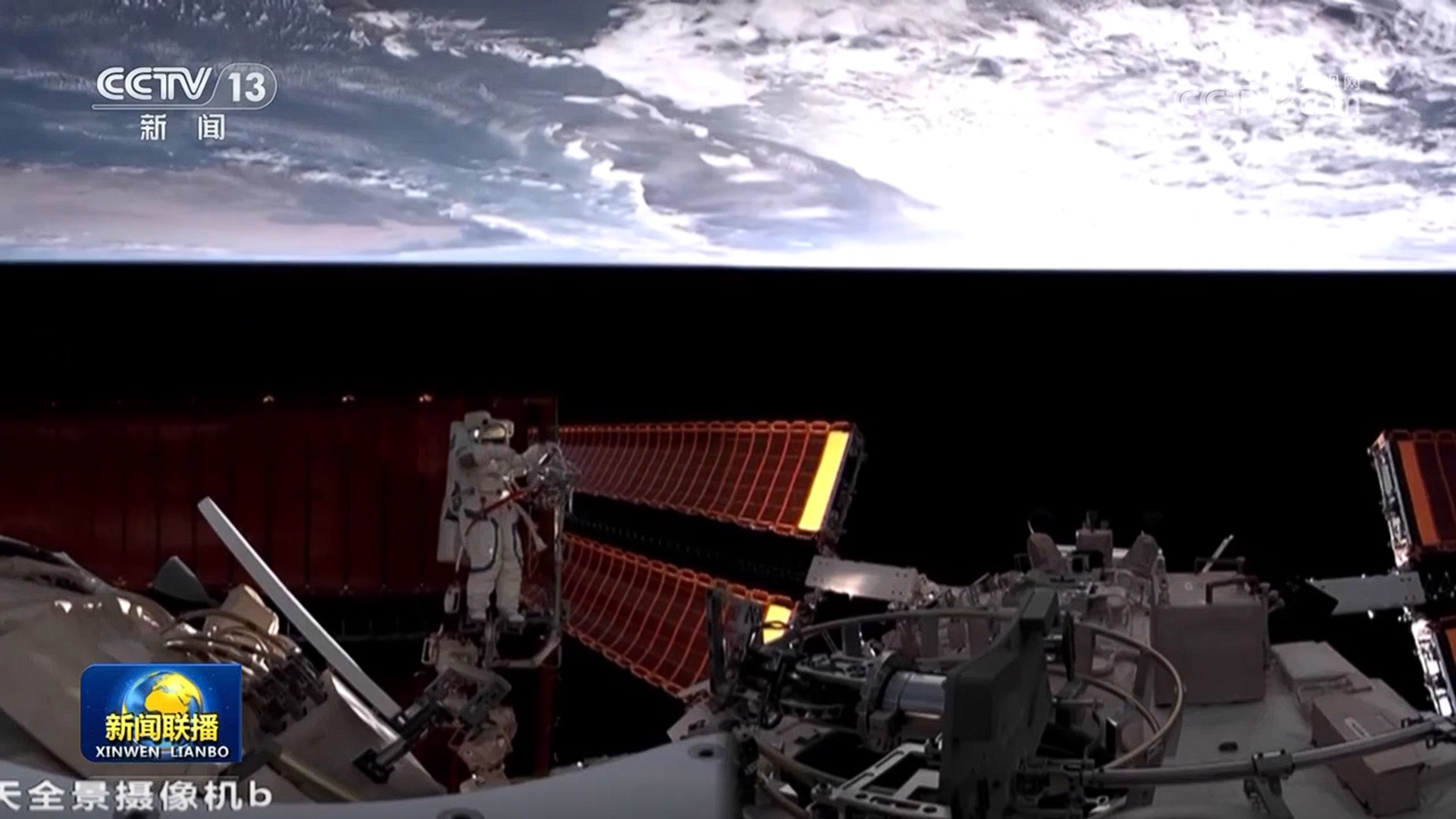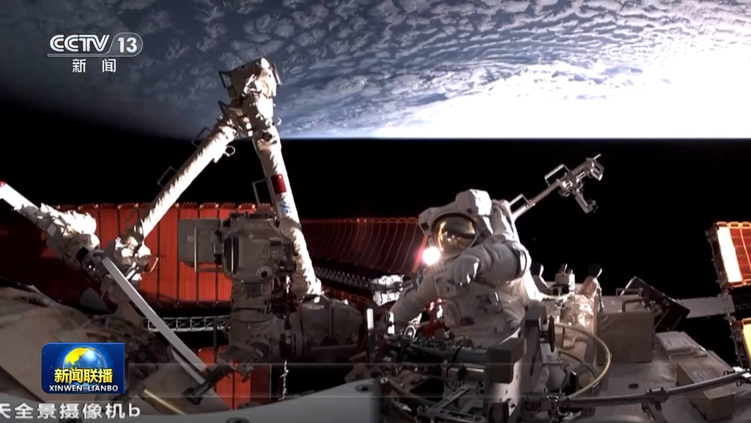 在空間站機(jī)械臂和地面科研人員的配合支持下,航天員乘組完成了空間站空間碎片防護(hù)裝置安裝、艙外設(shè)備設(shè)施巡檢等任務(wù)。今天1時12分,經(jīng)過約8.5小時的出艙活動,兩名出艙航天員安全返回問天實(shí)驗(yàn)艙。