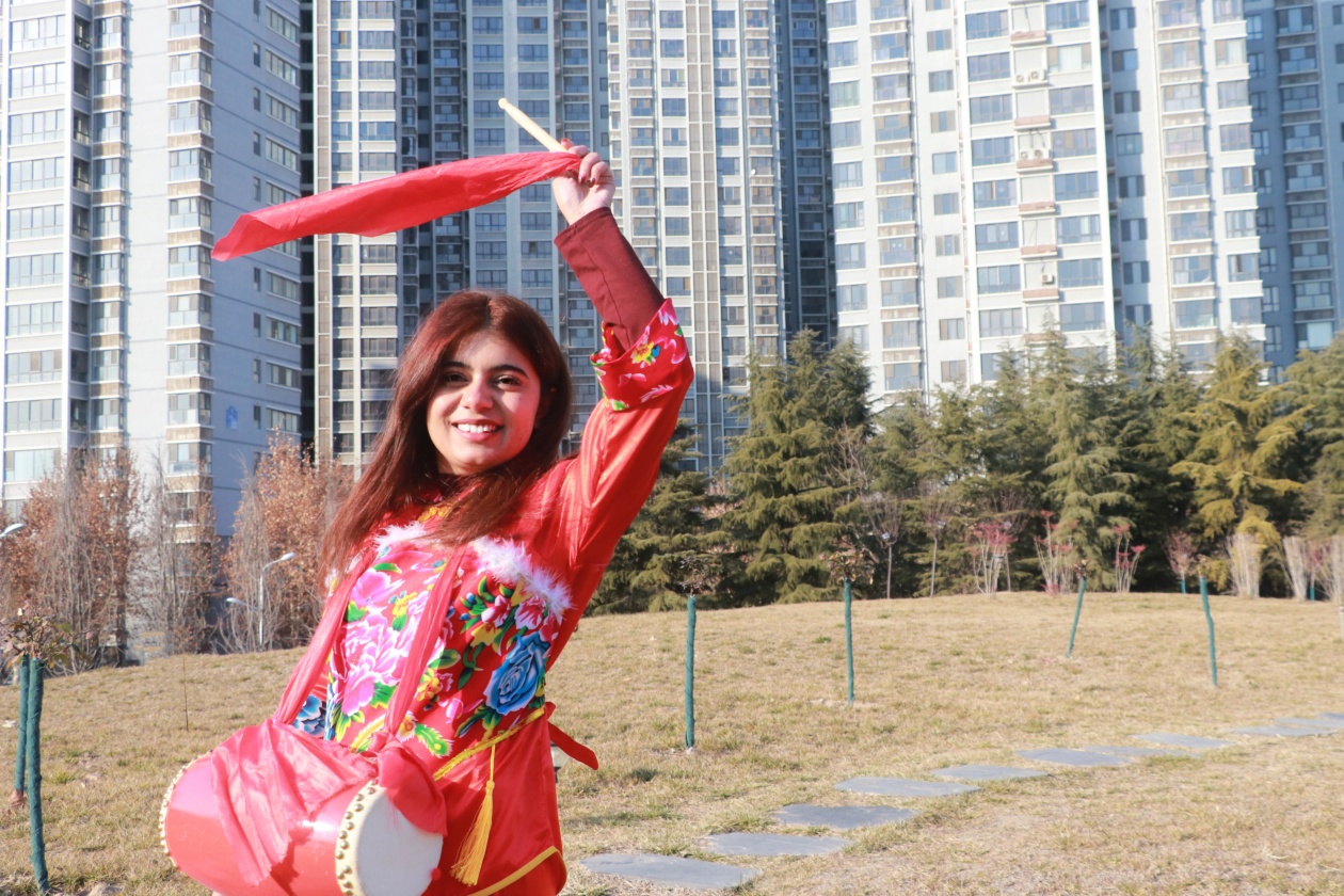 臨近蛇年春節(jié),全國各地慶?;顒虞喎涎?,年味十足。隨著“China Travel”持續(xù)火熱,具有中華傳統(tǒng)文化特色的文娛活動也越來越受到中外游客喜愛。在陜西,來自巴基斯坦的留學生麗娜被一項國家級非遺項目——安塞腰鼓深深吸引。