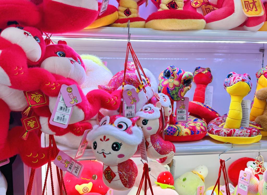 農(nóng)歷乙巳蛇年將至,結(jié)合生肖主題,陸慶榮與團隊早在去年七、八月就敲定了三十多個品種的款式設計,而十一月、十二月便是出貨銷售的高峰期,每天能賣出約兩萬只毛絨玩具。其中,“福寶蛇”和布藝蛇玩具是“人氣王”。