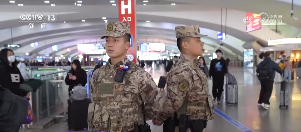 央視網(wǎng)消息:春運期間,全國各地旅客出行顯著增加,擔負執(zhí)勤任務(wù)的武警部隊官兵堅守執(zhí)勤一線,科學(xué)進行人員編組,在機場、高鐵等人流聚集處加強警戒、疏導(dǎo)巡邏,為旅客安全出行保駕護航。