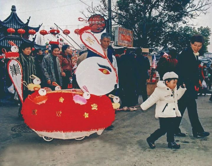 上世紀(jì)90年代孩子拉著兔子花燈歡快奔走 圖源:南京秦淮區(qū)文化館