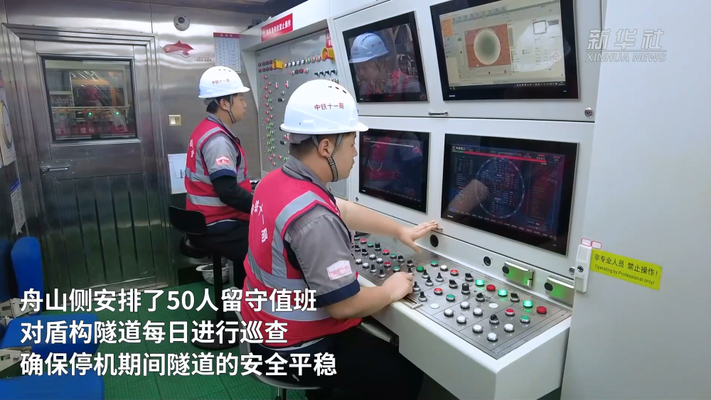 為確保工程穩(wěn)步推進,春節(jié)期間,金塘海底隧道寧波側仍有150名工人堅守崗位,施工現(xiàn)場24小時不停工作業(yè);舟山側安排了50人留守值班,對盾構隧道每日進行巡查,確保停機期間隧道的安全平穩(wěn)。