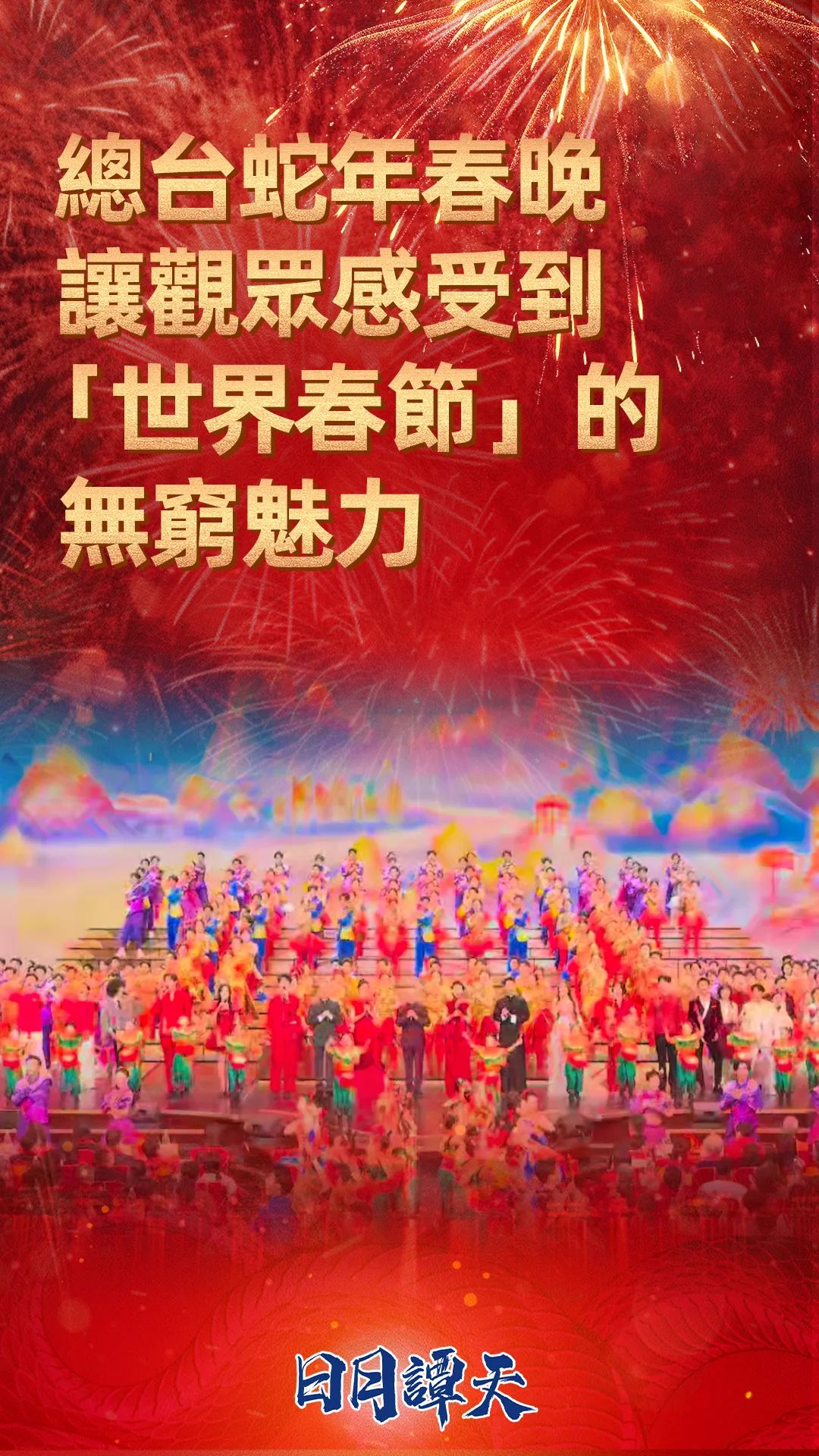 譚主注意到,蛇年春晚創(chuàng)新運(yùn)用新技術(shù)、多元展現(xiàn)國(guó)家發(fā)展成果,向全球受眾描繪“世界春節(jié)”的時(shí)代色彩。