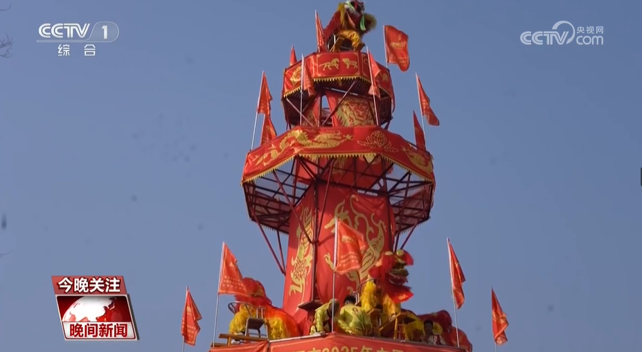 百獅齊舞迎新春,在河南漯河,一場(chǎng)非遺表演“九獅飛天”熱鬧上演。只見舞獅者腳踩空中繩索,跳躍、騰空,在17米高的“通天塔”上展開了一場(chǎng)獅王爭霸賽。精彩的表演引得觀眾連聲叫好。