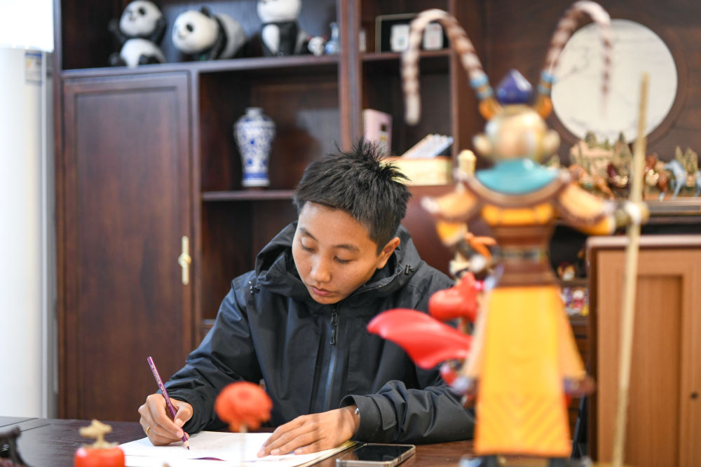 邱玥在工作室為下一個燈會項目進行設計(1月27日攝)。