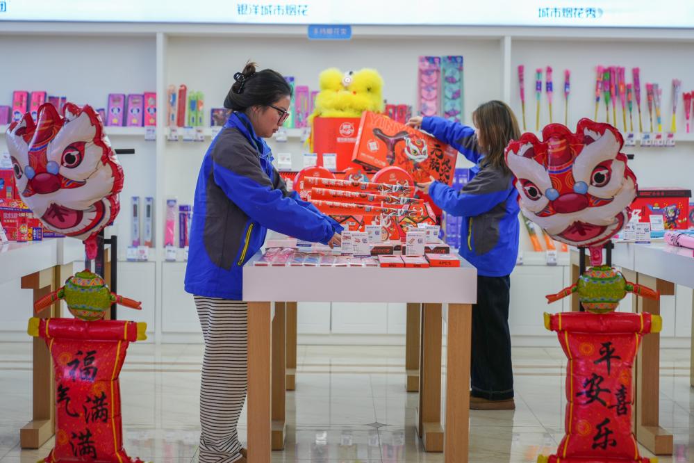 大瑤鎮(zhèn)一家花炮企業(yè)的員工在整理帶有春節(jié)元素的新產(chǎn)品。新華社記者 陳澤國(guó) 攝