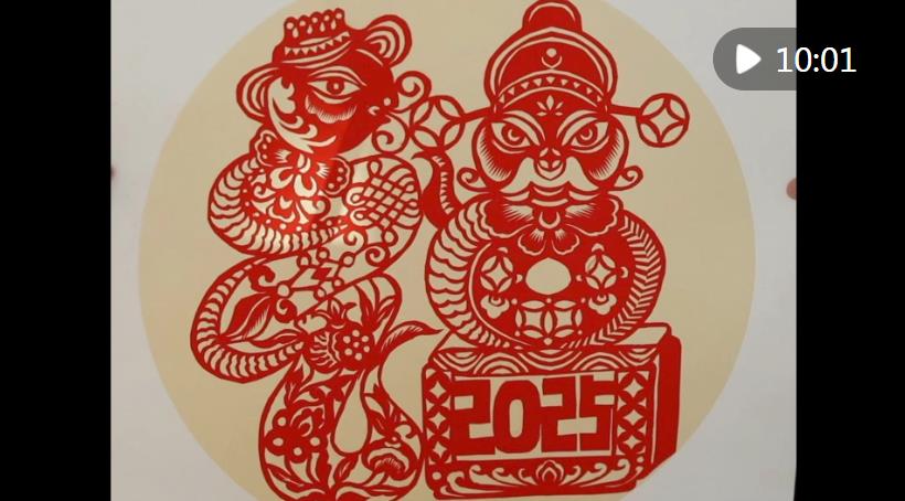 左手持紅紙,右手握剪刀,65歲的伏兆娥時(shí)而微笑、時(shí)而凝神,沉浸在創(chuàng)作之中?!八透I摺?,許仙、白娘子,“蛇盤(pán)兔”……伏兆娥制作了多幅造型各異的剪紙作品慶祝新春佳節(jié)的到來(lái)。