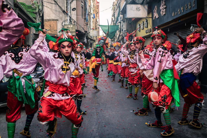 即便一直以松散的形式存在,甲子英歌憑著小鎮(zhèn)人的熱情和情懷,在唱念做打、武術(shù)臉譜等多個(gè)行當(dāng)傳了一代又一代,師傅傳徒弟、父?jìng)髯印?/p>